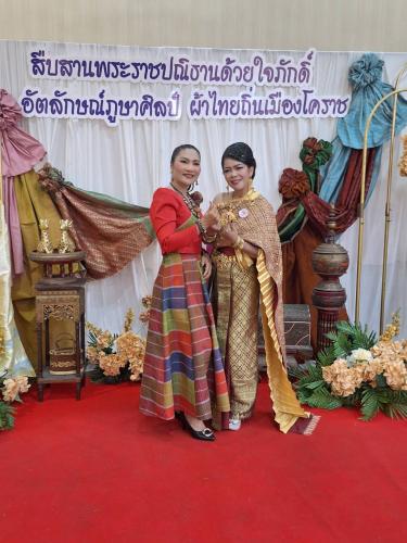 ในการนี้ นางหยกแก้ว เหงกระโทก พัฒนาการอำเภอโชคชัย พร้อมด้วยเจ้าหน้าที่สำนักงานพัฒนาชุมชนอำเภอโชคชัย และผู้ประกอบการ ร้านตาปั่นดินเผา ได้ร่วมสนับสนุนกิจกรรมการเดินแบบของสตรีอำเภอโชคชัย เพื่อส่งเสริมการใช้ผ้าไทยและการมีส่วนร่วมของชุมชน